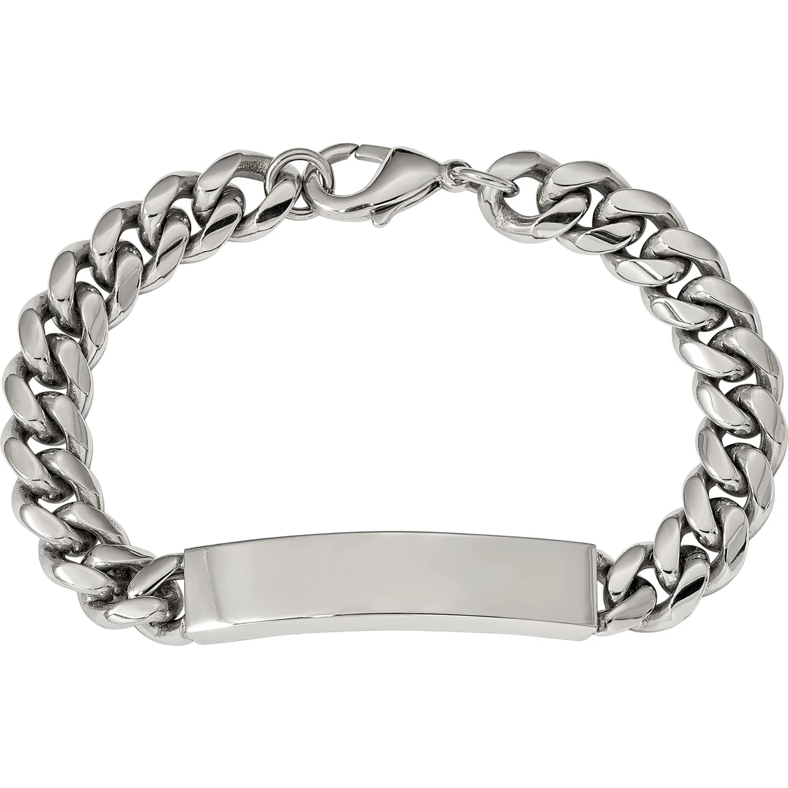 Bring a personalized accent to your look with this stainless steel ID bracelet from Chisel. Featuring a 45x10mm engravable ID plate, this 8.25-inch long curb chain bracelet boasts high polished finish for an everlasting shine. Protected with a fancy lobster claw clasp, this bracelet weighs approximately 44.36 grams. Style: SRB2225-8.25.