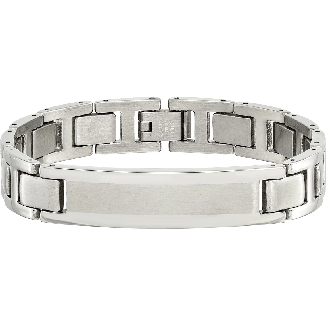 This lovely, stainless steel bracelet from Chisel is carefully crafted. This 8.25-in. bracelet has a fold-over catch, brushed and high-polished finish for a lasting and glistening shine. This ID, link bracelet is perfect for dress or casual wear. Style: SRB2013.
