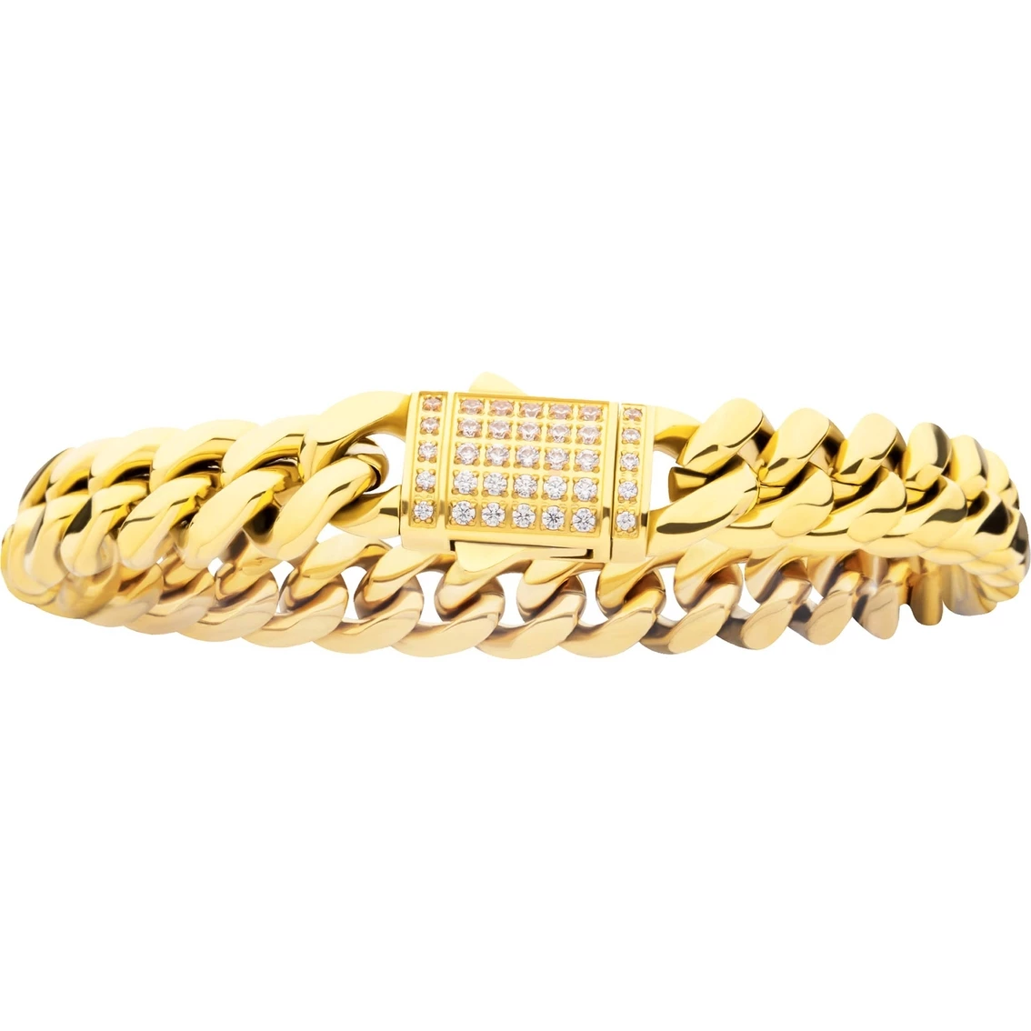 Buy β INOX 18K Goldtone Miami Cuban Chain Bracelet With Cubic Zirconia π