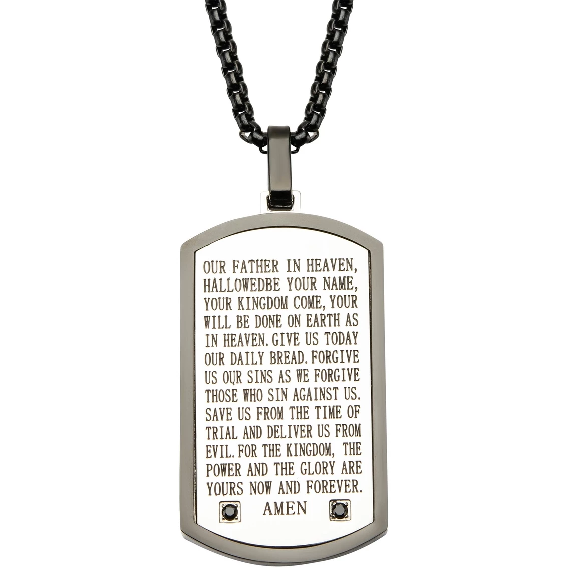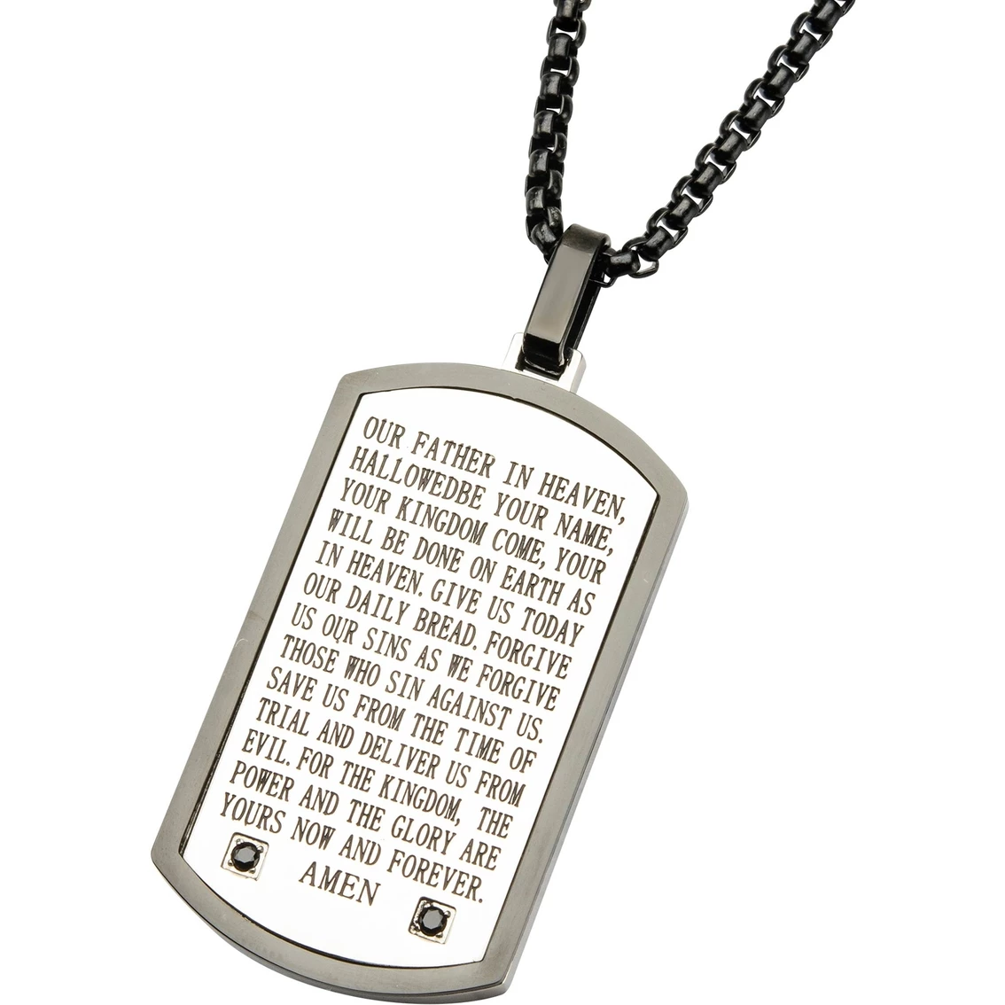 Coupon βοΈ INOX Black Ion Plated Lord's Prayer Black Cubic Zirconia π Dog Tag Pendant 24 In. π