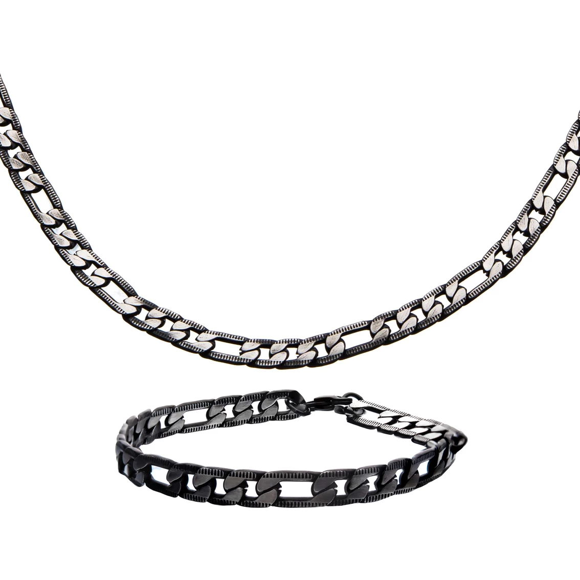 Best deal β INOX Men's Blacktone Figaro Chain Necklace And Bracelet Set π