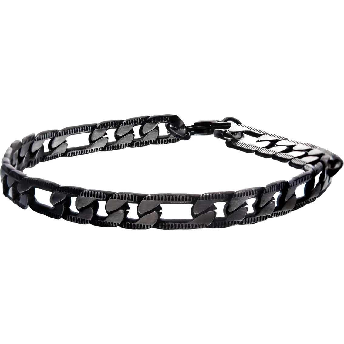 With its edgy look, the INOX Men’s Black Plated Figaro Chain Necklace and Bracelet Set raise your style several notches. Style: BR27873K-SET.