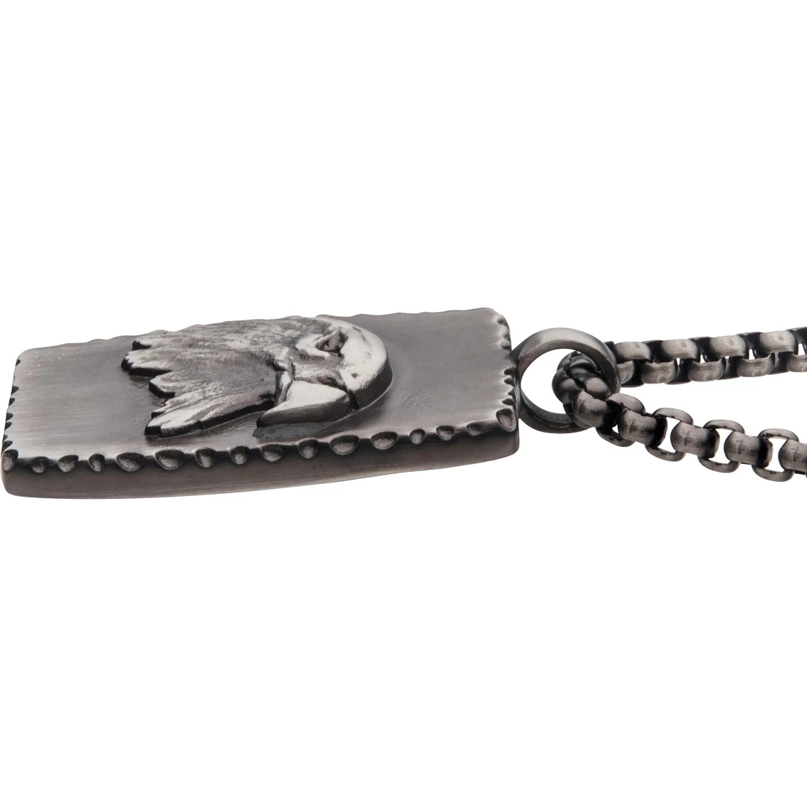 Discount π INOX Men's Gun Metal IP Eagle Inlay π Dog Tag Pendant With Round Box Chain π