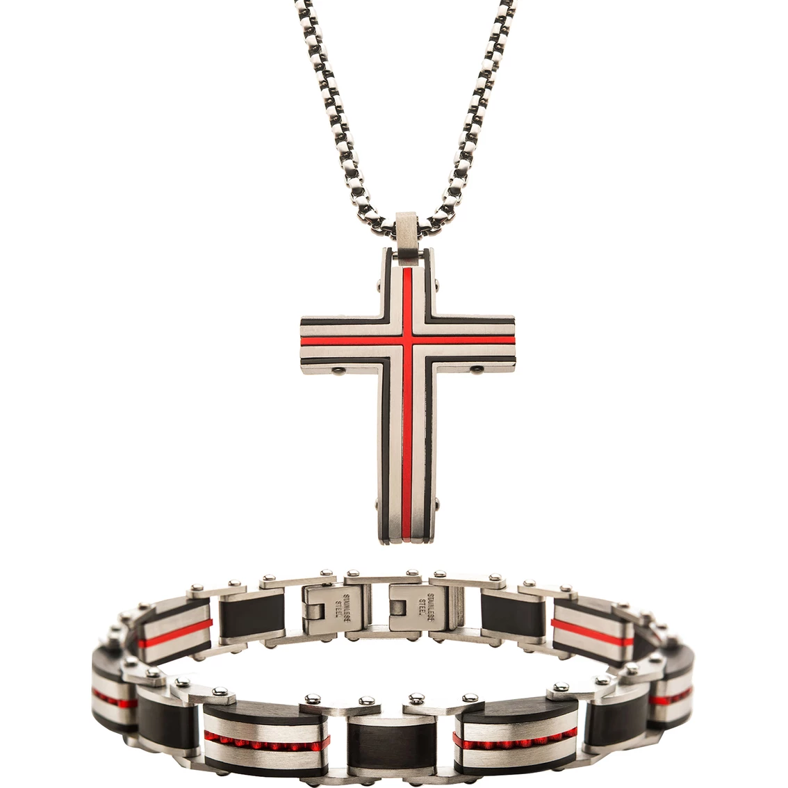SKU: 3308176 Categories: Chains & Pendants, Men's Jewelry Tags: Chains & Pendants, Holiday Gift Guide, INOX, Men's Steel Black and Red Plated Dante Link Bracelet and Pendant with Chain
