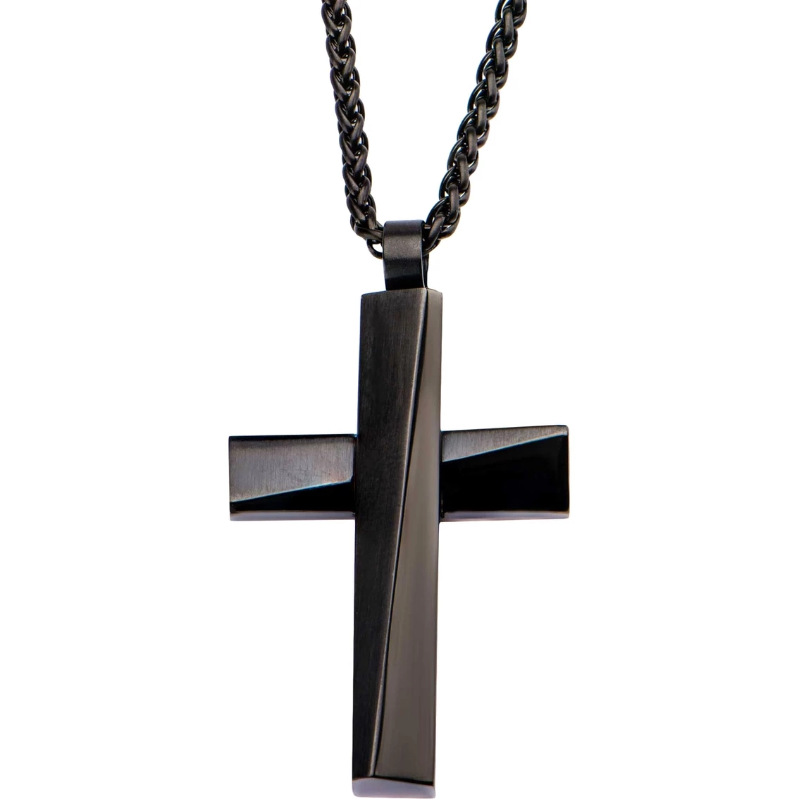 Be the first to review “Discount π INOX Stainless Steel Black IP Twisted Bar Cross Pendant 24 In. π” Cancel reply
