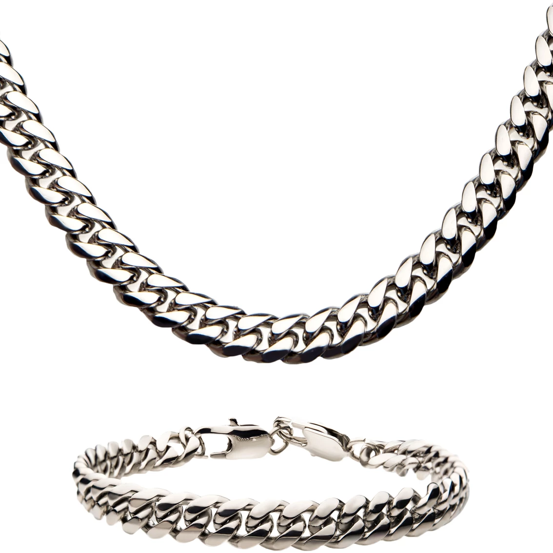 Add distinctive masculine style to your look with this jewelry set. It includes a unique 22-in. stainless steel Cuban chain and an 8.5-in. bracelet. Style: NSTC1008-SET.