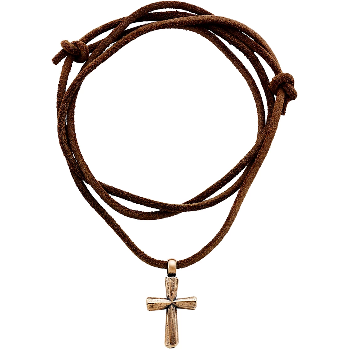 Rugged with timeworn texture, this design unites a bronze cross with the look of hand-knotted brown leather to create a meaningful expression of faith. 22 in. Product dimensions may vary. Style: NK-191-749209.