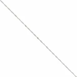 Ideal for any occasion day or night, this 14K white gold rhodium plated Singapore chain necklace is sure to impress. This 2.00mm wide solid necklace features a diamond cut and a high polished finish for striking shine. It secures with a lobster clasp closure. This charming Singapore chain necklace makes a classic fashion statement that’s perfect for year-round wear. Style: PEN169.