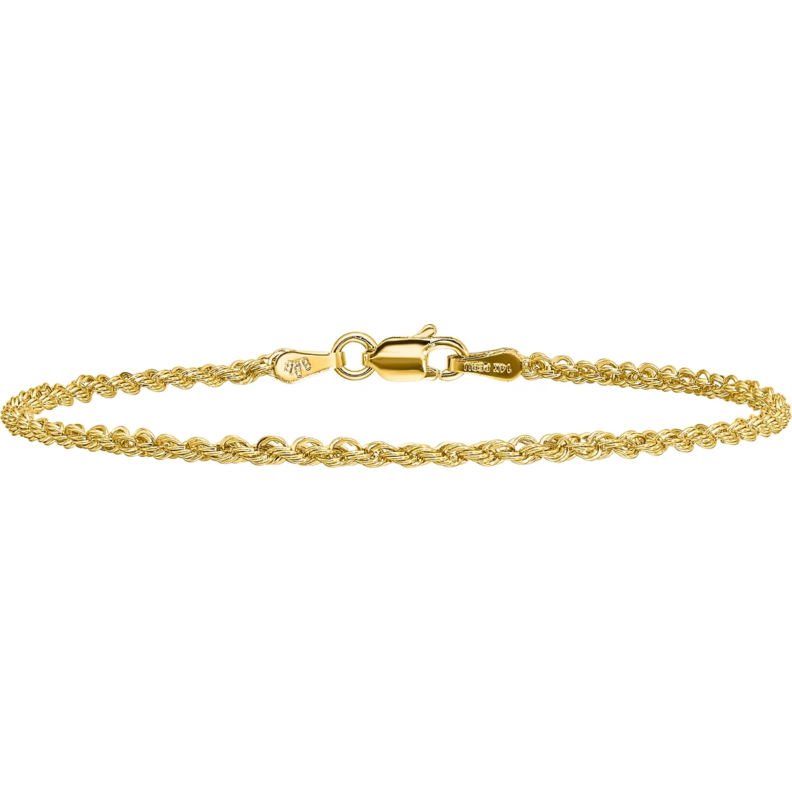 Enhance your ensemble with this eye-catching 14K yellow gold chain bracelet. Versatile in design, this 7 in.a long and 2mm wide bracelet has a rope style design highlighted with a gleaming polished finish for an attractive look. A lobster clasp offers complete protection to this bracelet. Style: 014S-7.