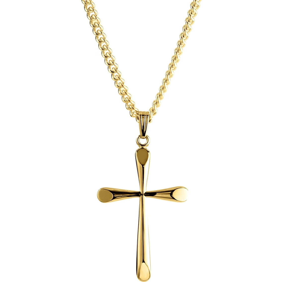 This 14K yellow gold-filled cross pendant has a timeless quality. It is solid and polished and features a 24-in. stainless steel chain. A gift box is included. Style: C647AA.