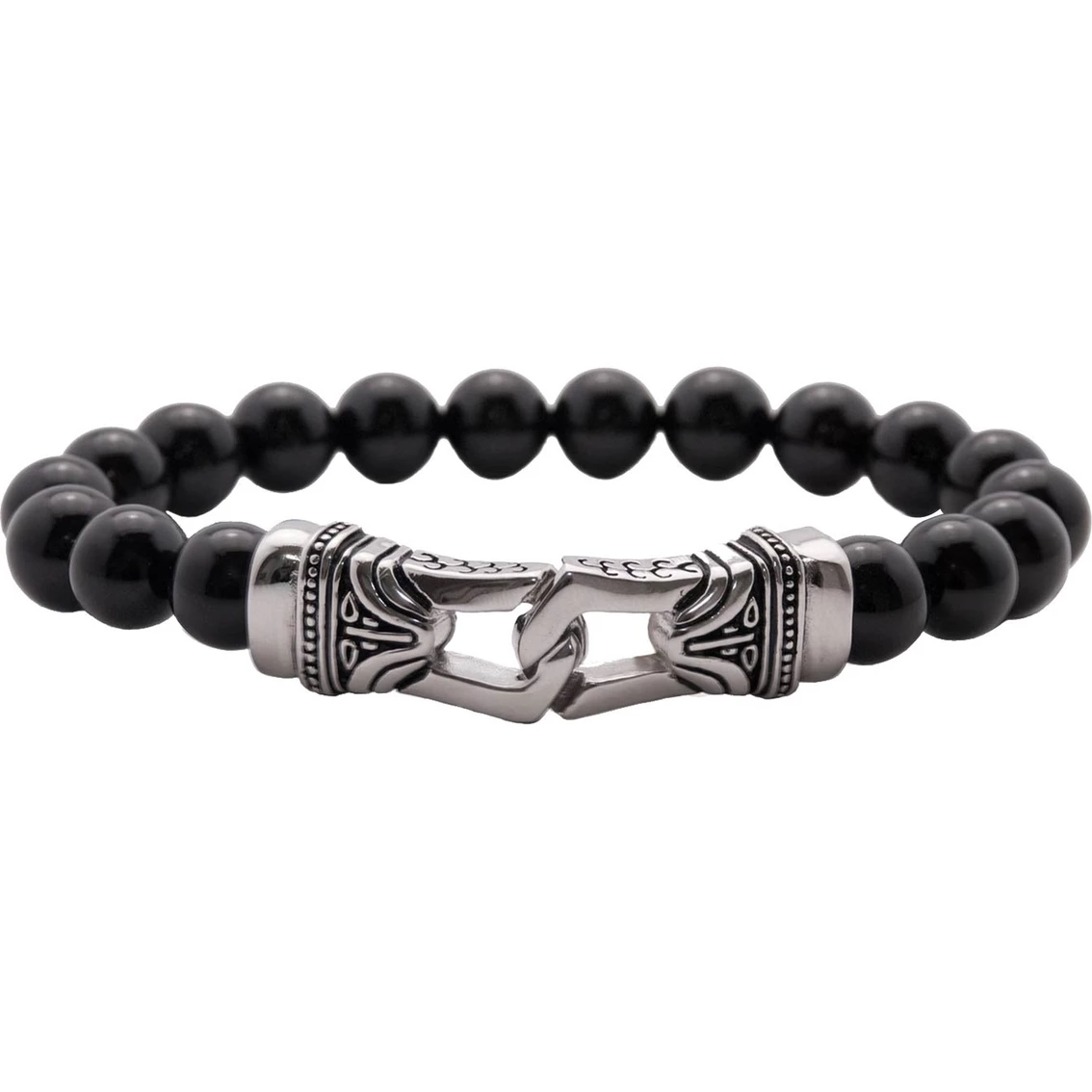 Appeal to his sense of fashion with this Black Agate bead bracelet with Stainless Steel clasp. Length: 8.5 in. Style: STBA271A.