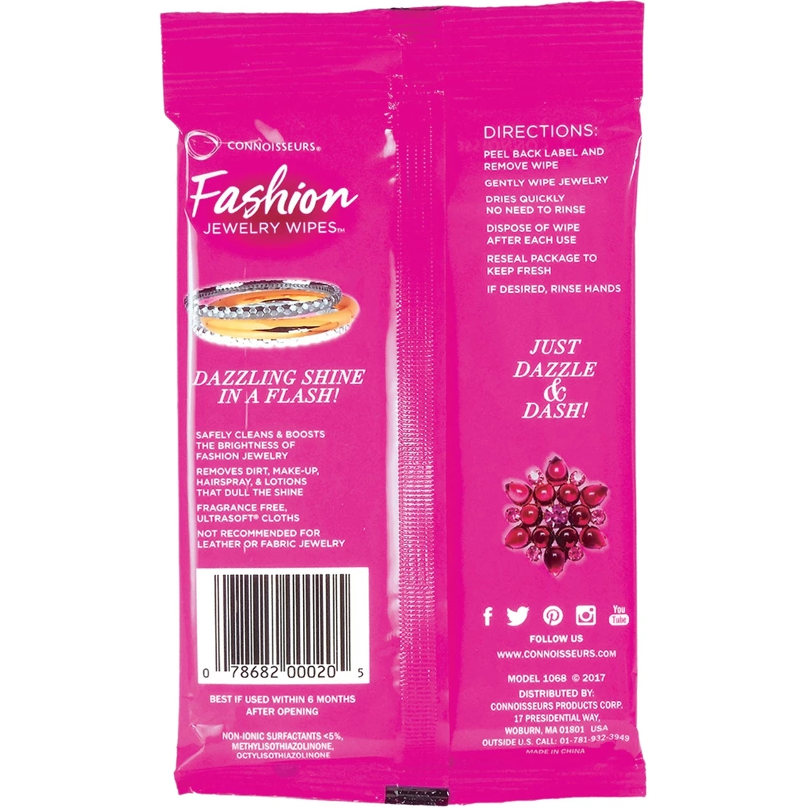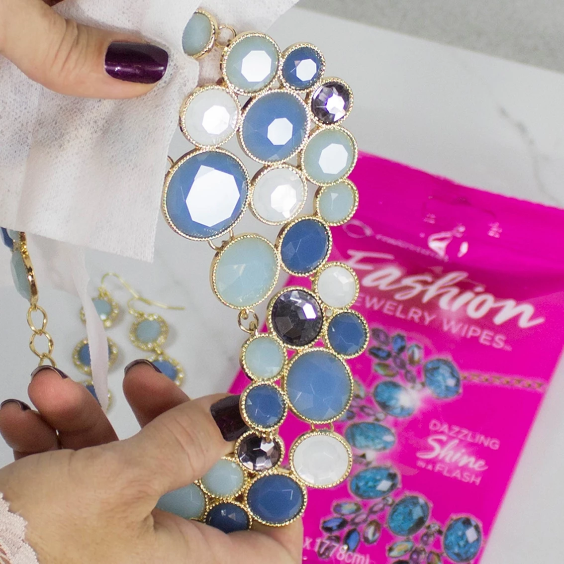 These fashion jewelry wipes are the quick, easy and safe way to keep your fashion jewelry bright and looking like new. They safely clean and boost the brightness of fashion jewelry by removing dirt, makeup, hairspray and lotions that dull the shine. The package contains 15 moist, fragrance-free, UltraSoft 5 in. x 7 in. wipes. Dries quickly and no need to rinse. Not recommended for leather or fabric jewelry. Model: 1068-12.