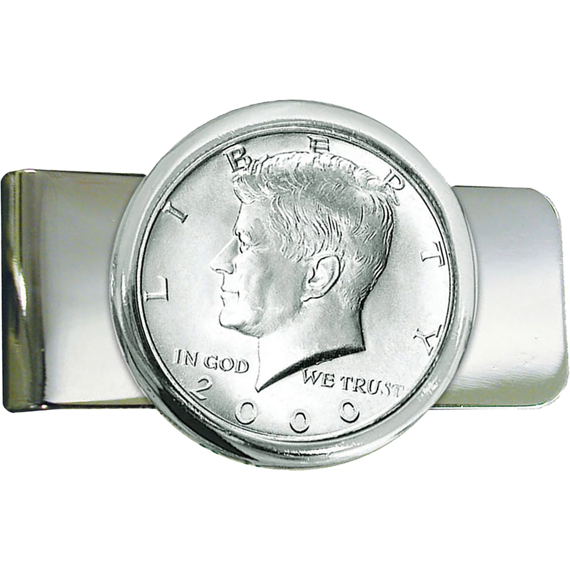 Spectacular silvertone money clip features a genuine John Fitzgerald Kennedy half dollar minted from 1964 to the present. Comes with certificate of authenticity. Style: 2396.