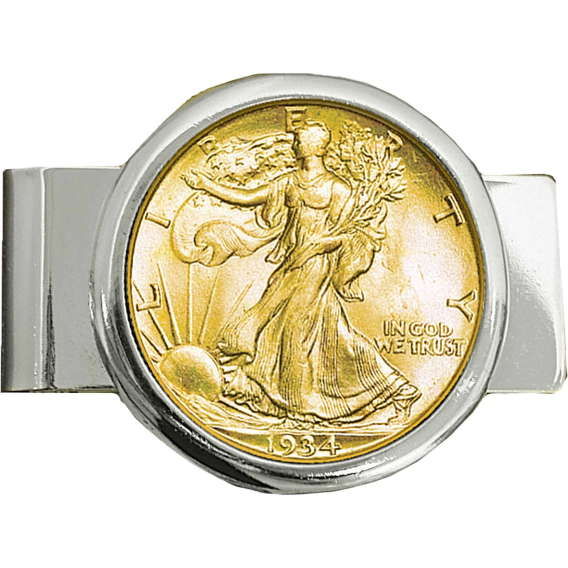 New π Other Brands Silvertone Money Clip With Gold Layered Silver Walking Liberty Half Dollar π€©