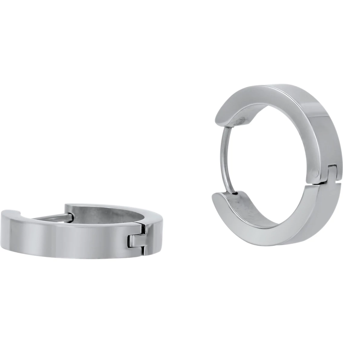 The bold appeal and polished shine make these hoops simply irresistible. Post earrings secure comfortably with hinged backs. Fashioned in stainless steel.