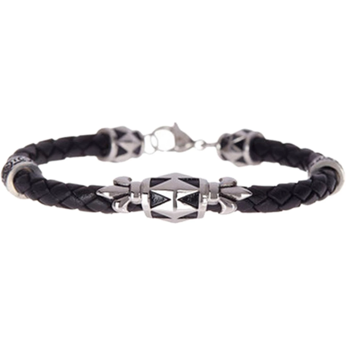 Genuine leather, stainless steel and black steel come together in this masculine bracelet featuring a pair of classic Fleur De Lis. Model: BJB139.