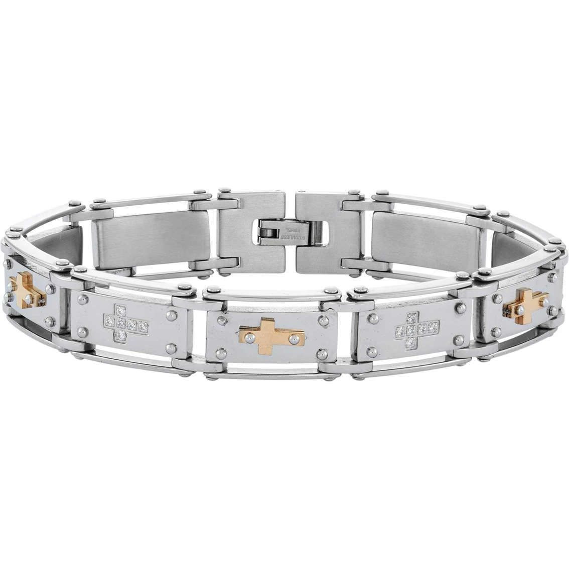 Best Sale 𧨠Other Brands Stainless Steel And Gold Ion Plated Plated Crosses And Cubic Zirconia Bracelet βοΈ