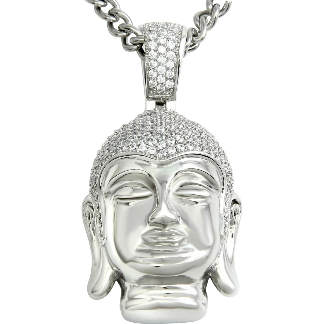 New π Other Brands Stainless Steel Buddha Head With Cubic Zirconia Pendant On Curb Chain 24 In. π₯°