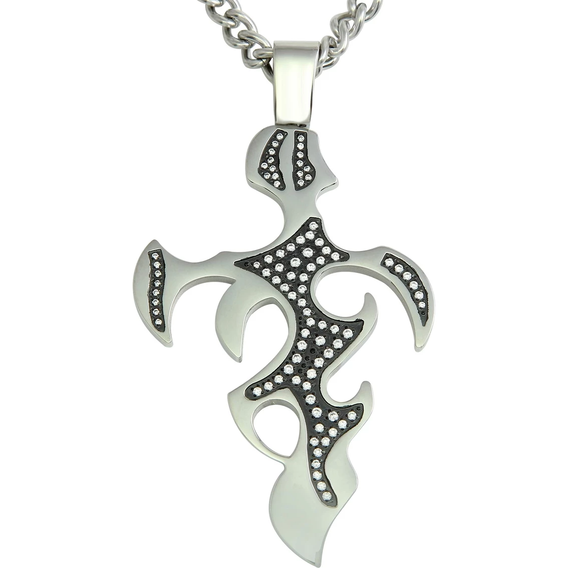 Stylish men’s stainless steel pendant. Featured with a flame cross with Cubic Zirconia on a 24-in. bead chain. Style: STP2477.
