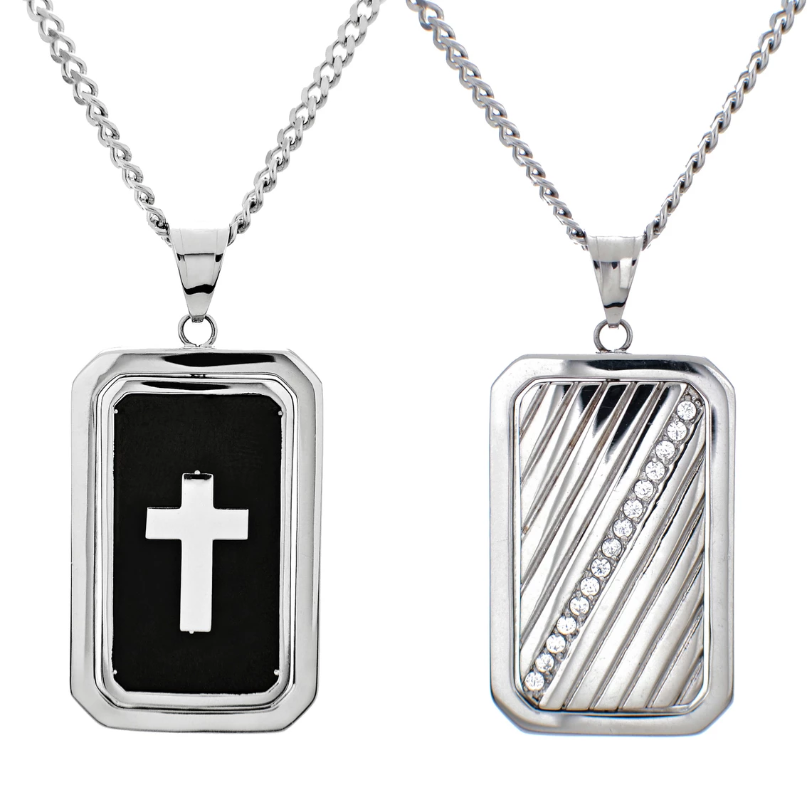 Discount ๐ฏ Other Brands Stainless Steel Reversible Black Ion Plated Cubic Zirconia Cross ๐ฆฎ Dog Tag Pendant ๐