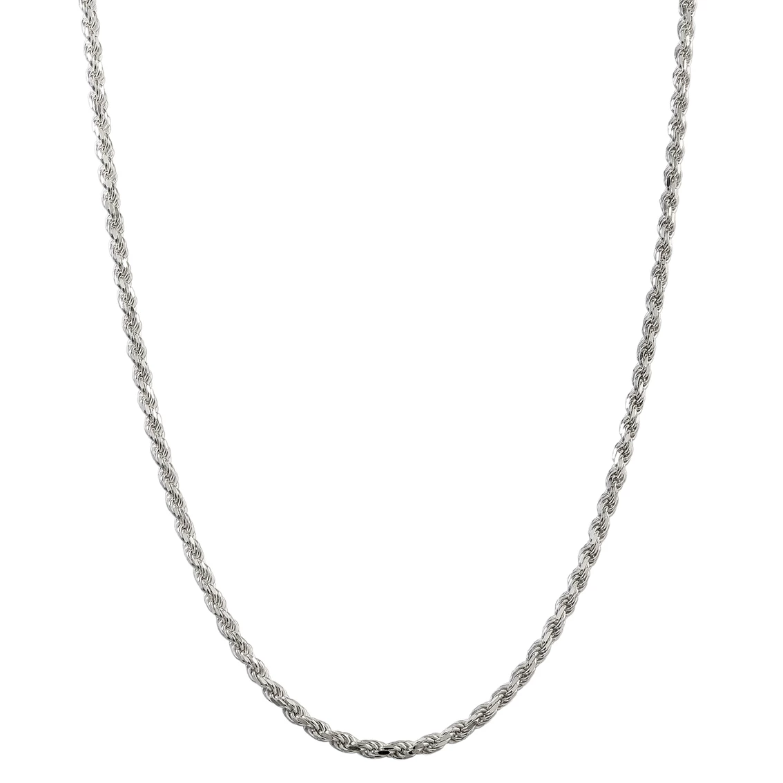 Bring some effortless elegance to your look with this exquisite sterling silver chain necklace. Fashioned in Italy, this enchanting necklace features a classic rope design with subtle diamond-cut detailing and a high polished finish to give a timeless appeal. Since it fastens with lobster clasp, this 24-inch long and 4.25mm wide necklace is sure to impress. Style: QDC090.