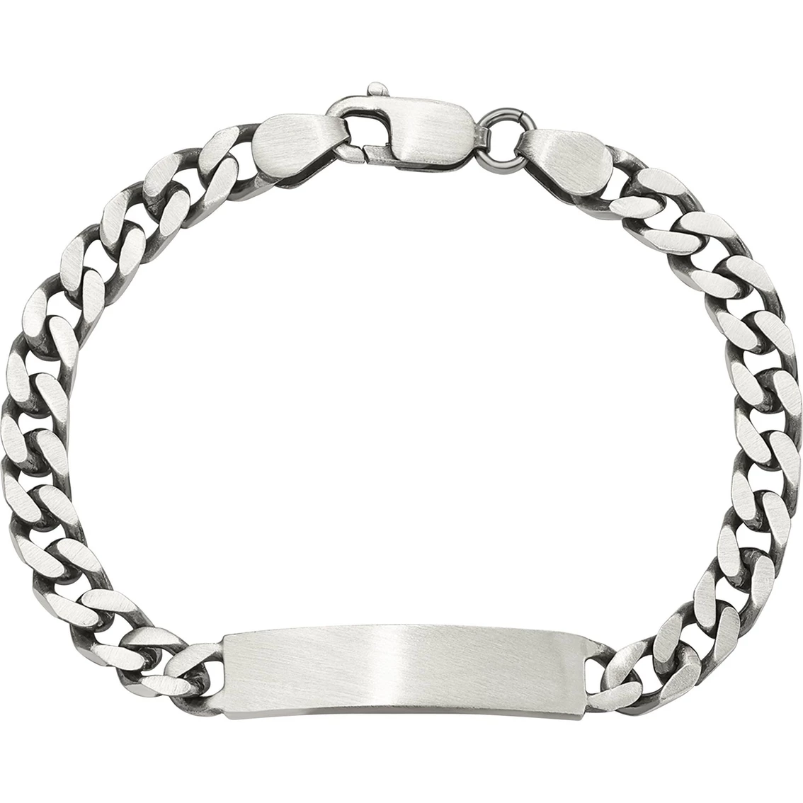 Add bold and sophisticated flair to your style with this curb link ID bracelet. Crafted from sterling silver, this 8-inch long lobster clasp secure bracelet showcases 44x7mm ID plate with brilliant antiqued finish for vintage look. Complete your look with this attractive bracelet.
