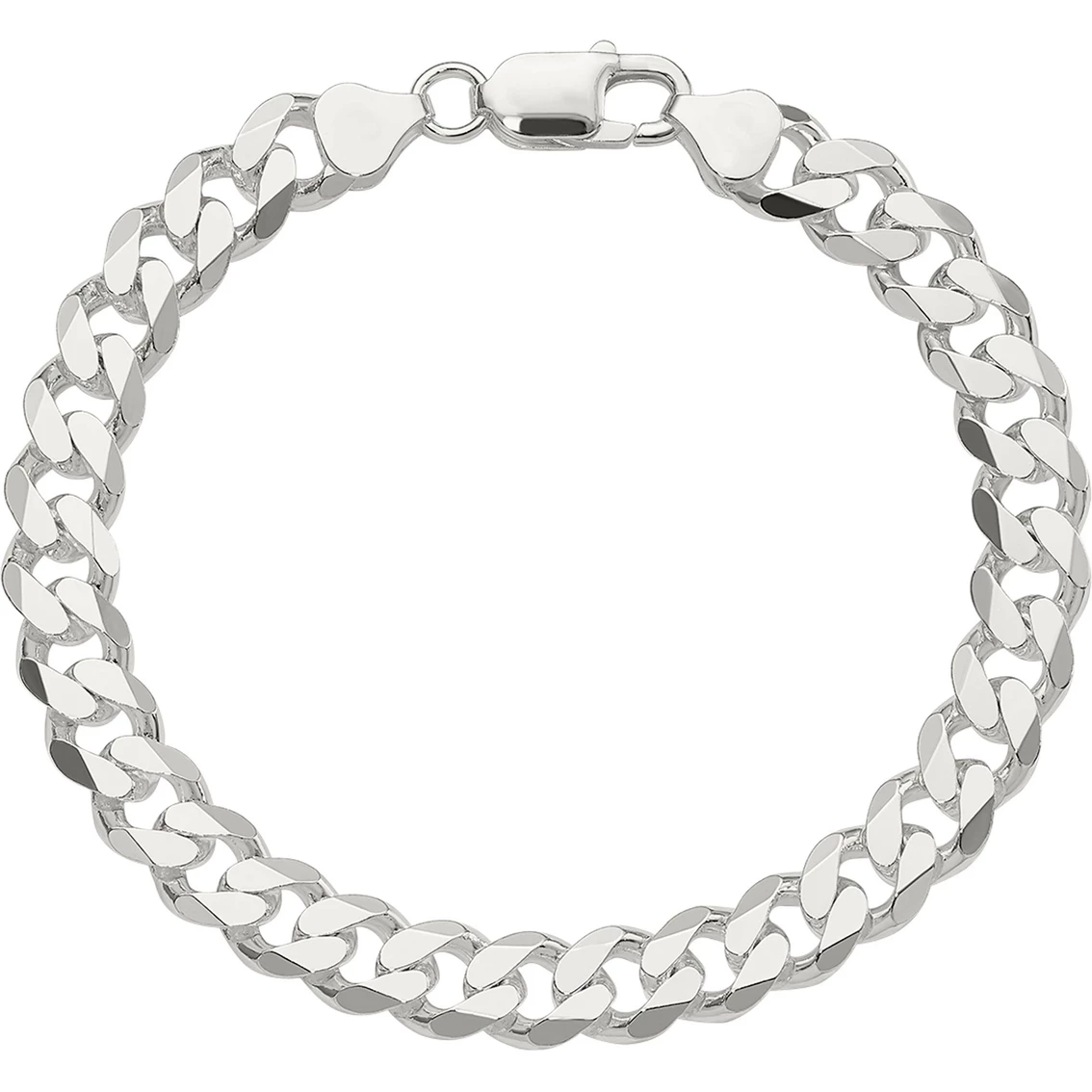 Sterling Silver 8mm Curb Chain Bracelet. Wrap your wrist in style with this wonderful sterling silver curb chain bracelet. Gleaming with polished finish this chain style link bracelet secures with a lobster clasp. This 8-in. long and 8mm wide bracelet is sure to be a welcome addition to any jewelry collection. Style: QCB220-8.