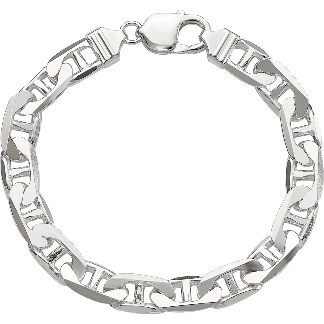 A charming and stylish bracelet. Give your outfit a touch of regal elegance with this solid flat anchor chain bracelet. Designed from sterling silver, this chain style bracelet has a polished finish for a durable shine. The 8-inch long and 9.5mm wide bracelet comes with a lobster clasp security. Makes a great gift or a charming treat for yourself. Style: QAN250-8.