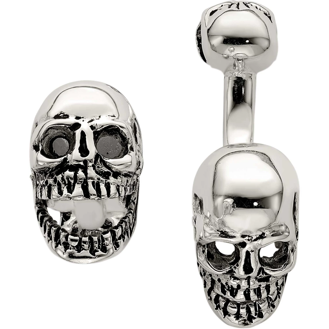 Cheapest π― Other Brands Sterling Silver Antiqued Black Ink Texture Moveable Skull Cuff Links π