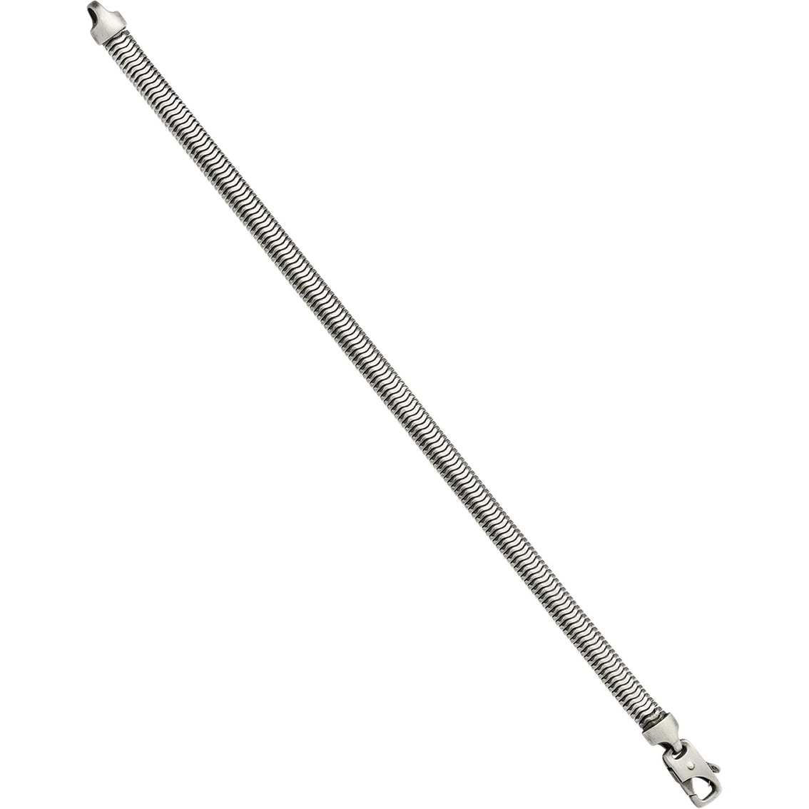 Flawlessly crafted in sterling silver, this men’s herringbone chain bracelet is sure to enhance your everyday style. Featuring herringbone chain design this 8.5-inch long bracelet is graced with luxurious brushed and antiqued finish for an elegant look. Safely secures with a lobster clasp, this bracelet will certainly catch attention.