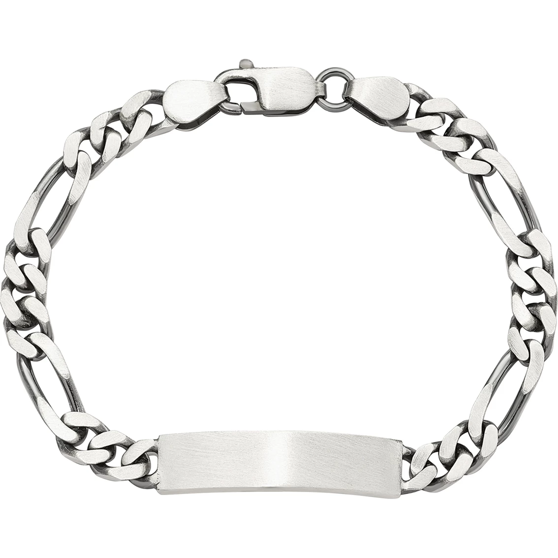 Bring a touch of modern luxury to your daily style with this elegant Figaro link ID bracelet. Rendered in quality sterling silver this 8-inch long bracelet features 43x7mm engravable ID plate with antiqued finish for timeless appeal. Get a sophisticated and stunning look with this charming lobster clasp secured bracelet. Style: QID126-8.