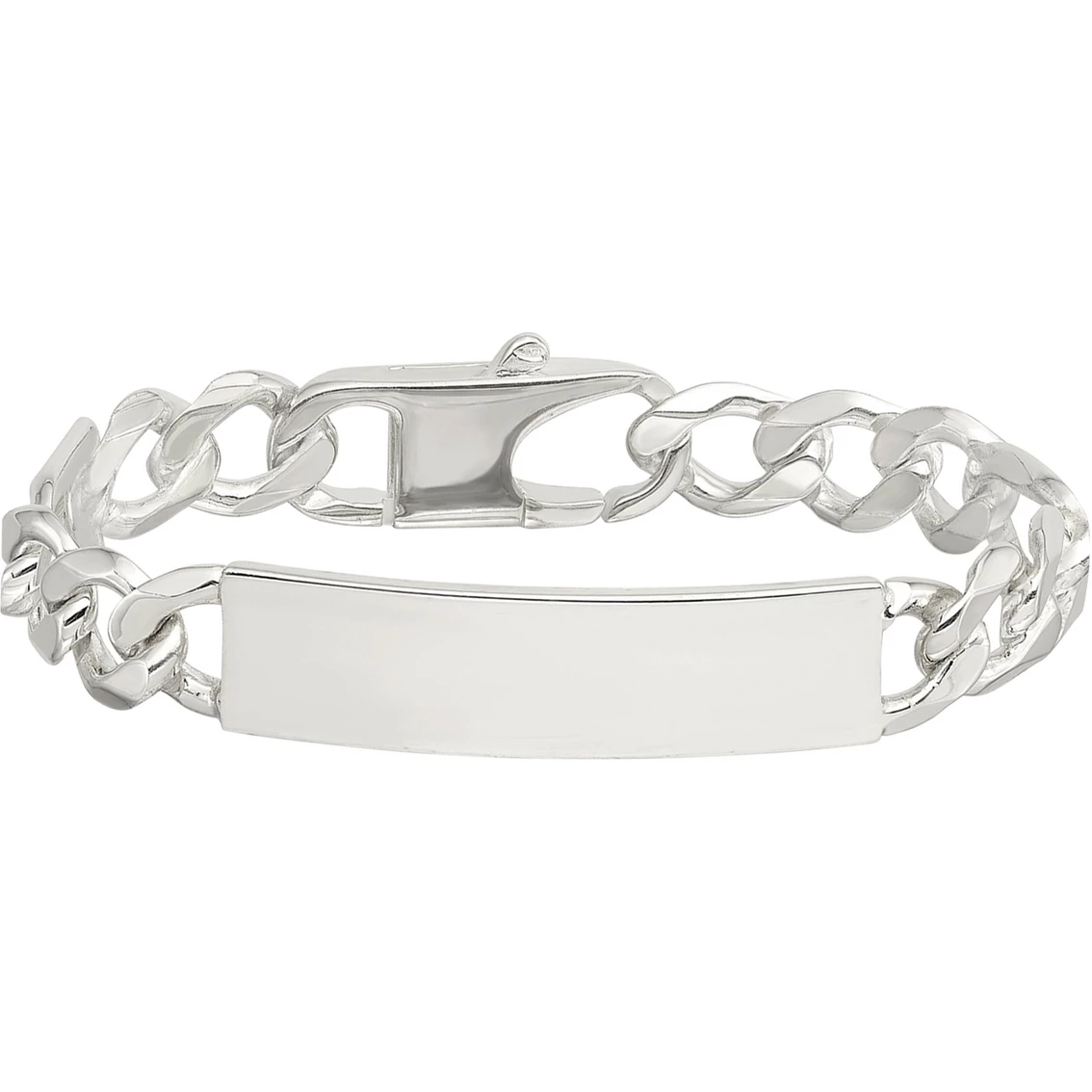Make a statement with this ID bracelet that is made from sterling silver. Depicting a 40mm x 10mm ID plate, this 8.5-in. long figaro link chain bracelet has a brilliant polished finish for attractive shine. A lobster clasp keeps this bracelet secure on your wrist. Style: QID190-8.5.