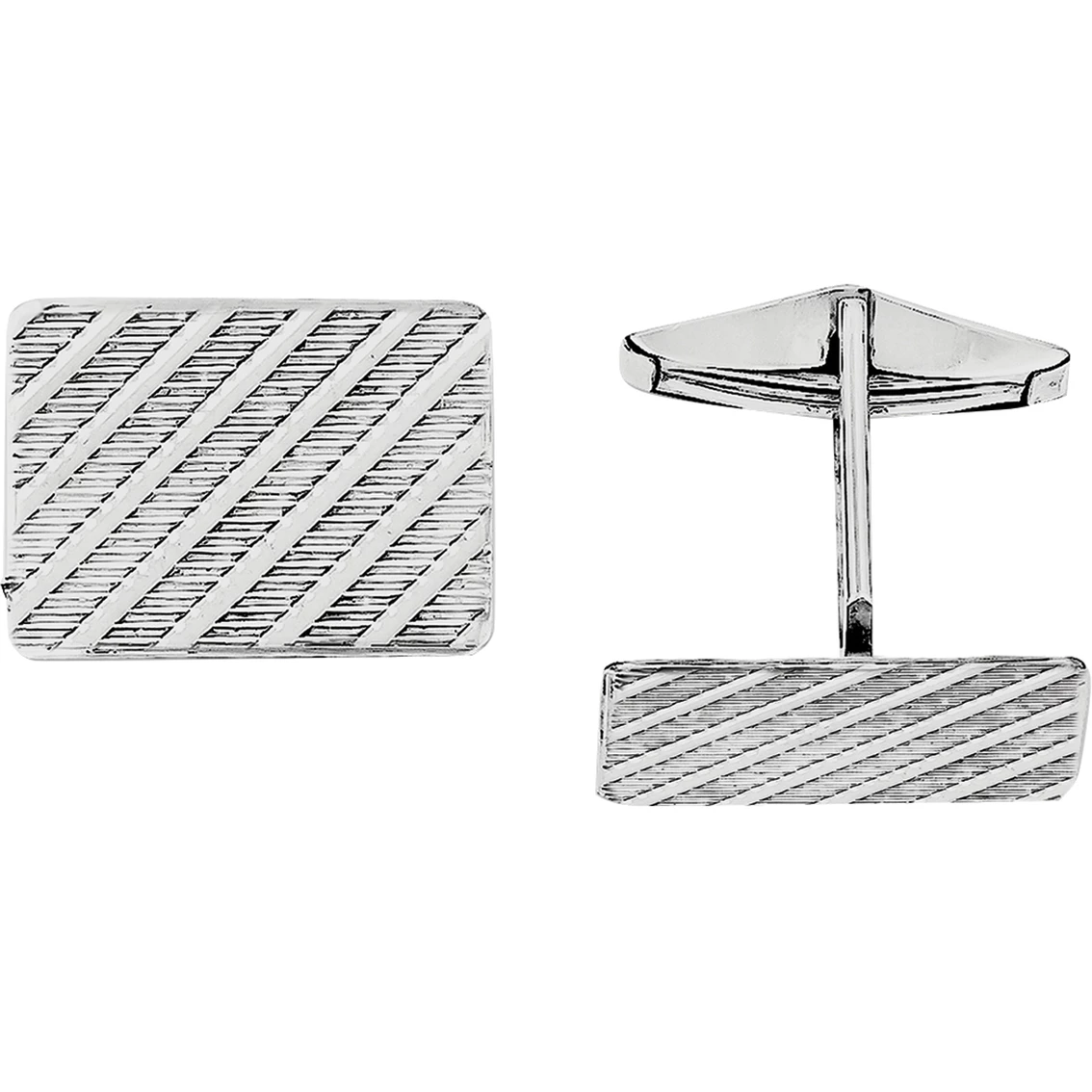 Handsome, modern, and casual, these rhodium-plated sterling silver cuff links features striking striped pattern for a unique look. These rectangular cuff links gleams with high polished finish and makes a great gift for that special man in your life. Style: QQ180.
