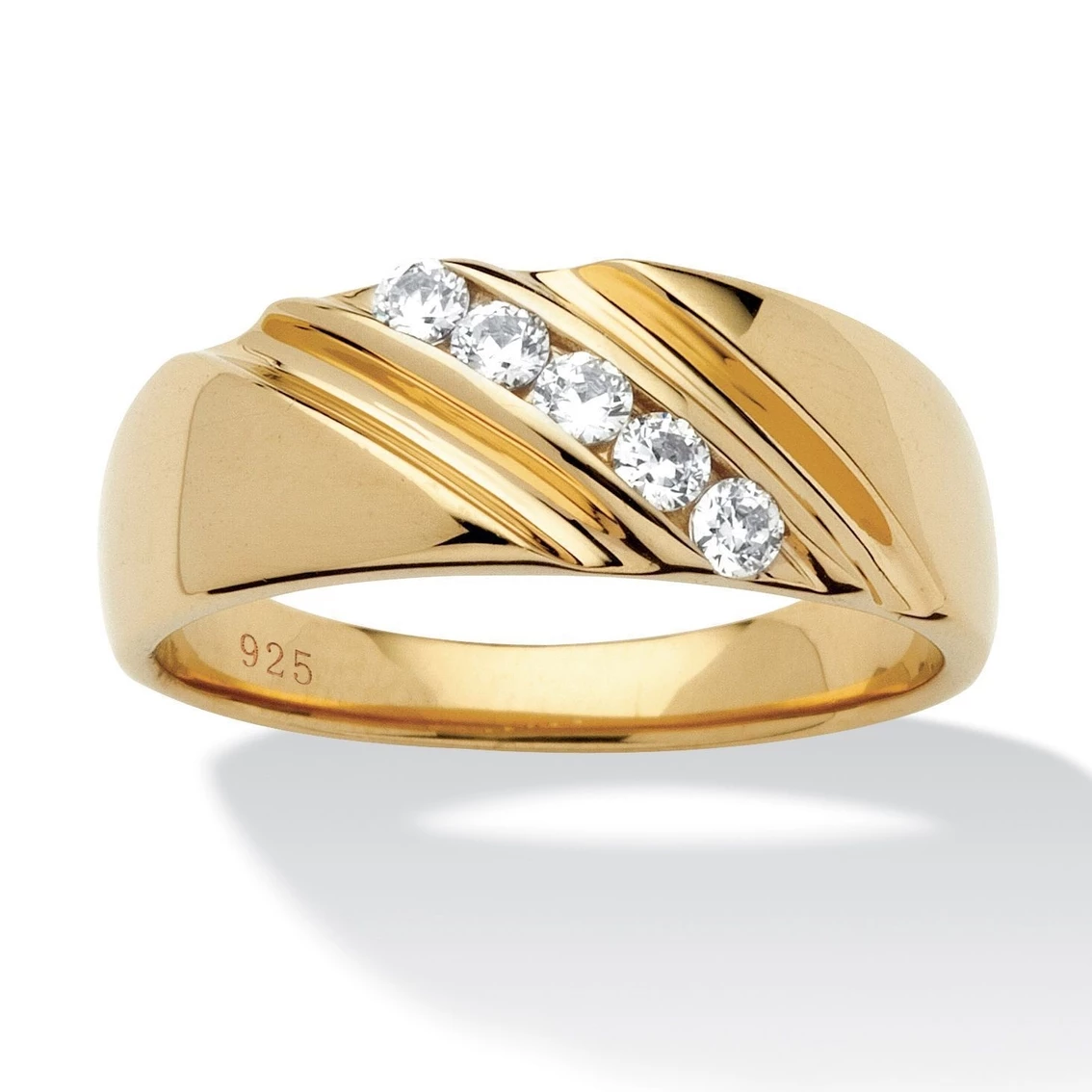 Brand new βοΈ PalmBeach Jewelry Men's .50 TCW Round Cubic Zirconia Diagonal Ring In 18k Gold-plated Sterling Silver Sizes 8-16 π