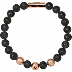 Top 10 π Bulova Men's Latin Grammy Bead Bracelet: Black Lava And Rose Goldtone Beads J98B008 β