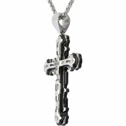 Cheap π Black & Blue Jewelry Two Tone Machined Steel And Diamond Cross Pendant βοΈ