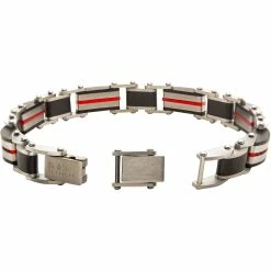 Promo π INOX Men's Steel Black And Red Plated Dante Link Bracelet And Pendant With Chain π