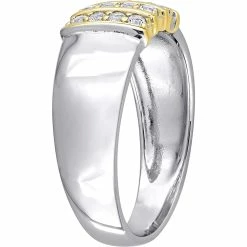 Coupon 𧨠Sofia B. Men's Silver & Yellow Gold 3/8 Ct. TGW Created White Sapphire 3 Row Ring π