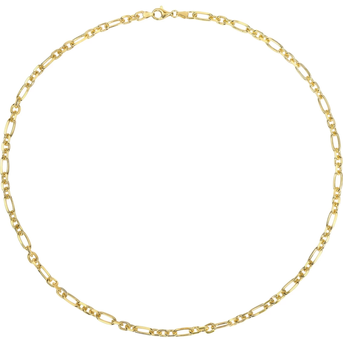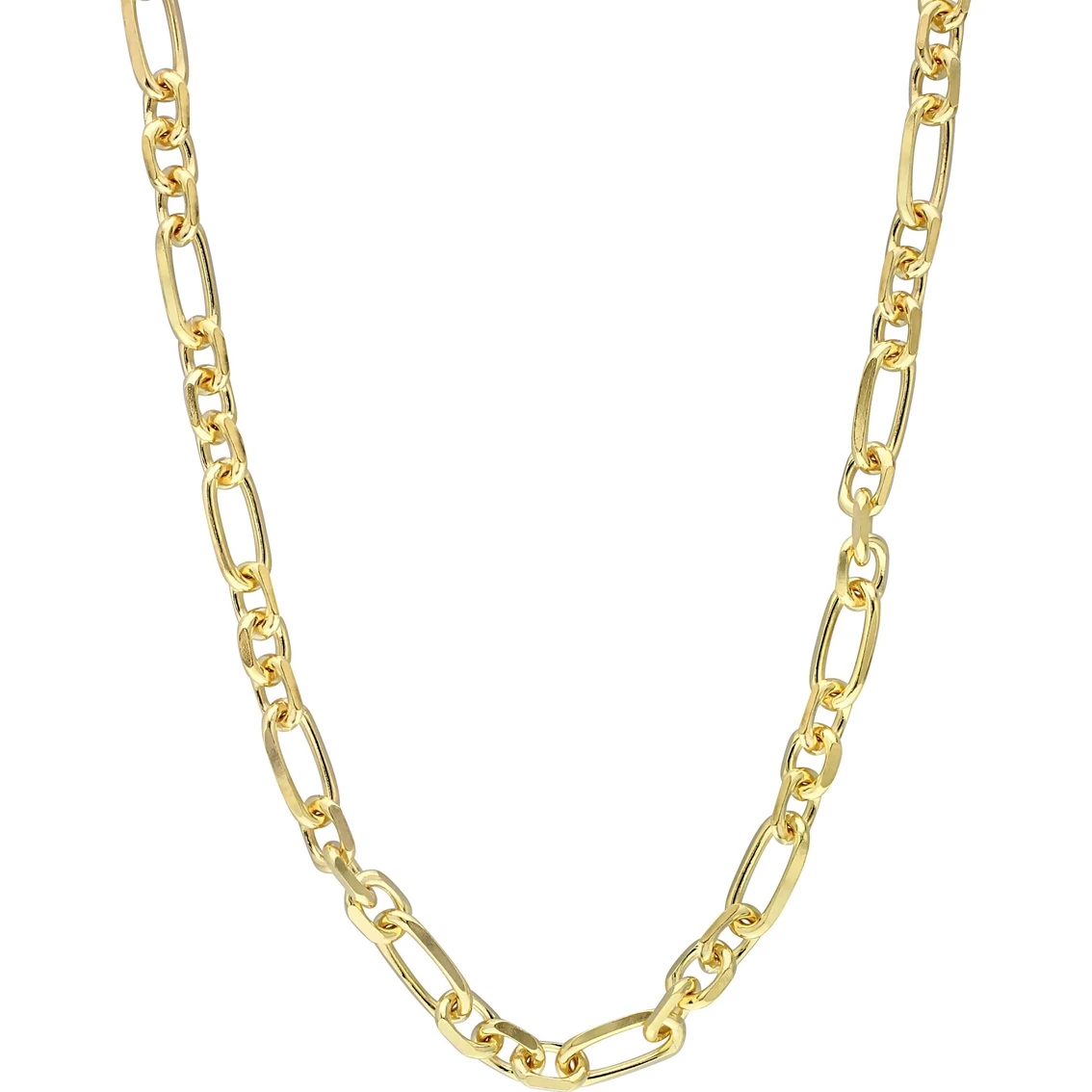 Add a touch of royalty to your look with this Sofia B. Diamond Cut Figaro Rolo Necklace. Crafted in lustrous yellow gold plated sterling silver, it features a fancy diamond cut Figaro rolo necklace. Enhanced with a high polished finish, this necklace measures 24 inches in length and secures with a lobster clasp. This alluring necklace is made in Italy. This necklace is the perfect addition to any jewelry collection.
