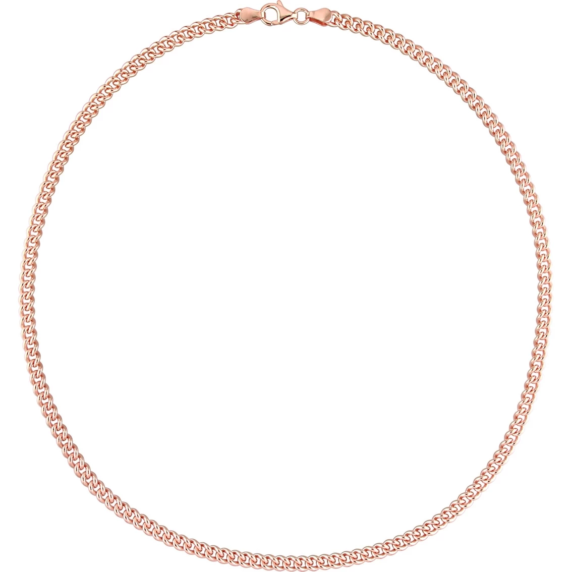 Add some charm to your outfit with this Curb Link Necklace. Crafted in lustrous rose gold plated sterling silver, it features a delicate curb link necklace. Polished a brilliant shine, this link necklace measures 20-inch in length and secures with a lobster clasp. This glamorous chain is made in Italy and is the timeless addition to any jewelry collection. Available in 16″ 20″, 24″ Model: AFS008152/20.