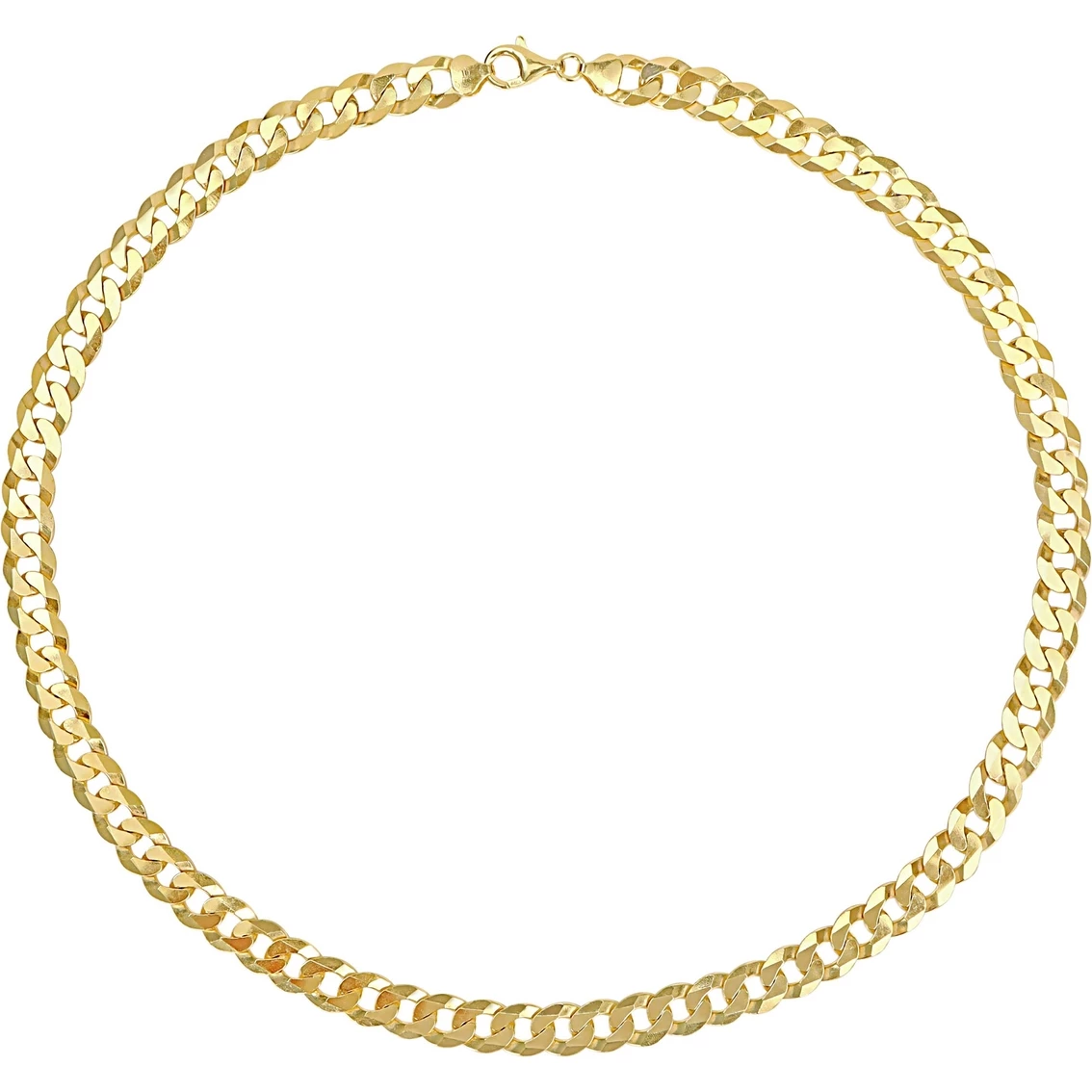 This Curb Link Necklace from Sofia B. is crafted in lustrous yellow gold over sterling silver and features a fancy curb link chain. Enhanced with a high polished finish, this necklace measures 24-in. in length and secures with a lobster clasp. Definitely an eye-catching piece of jewelry, this curb link chain necklace is made in Italy. Style: AFS008199.
