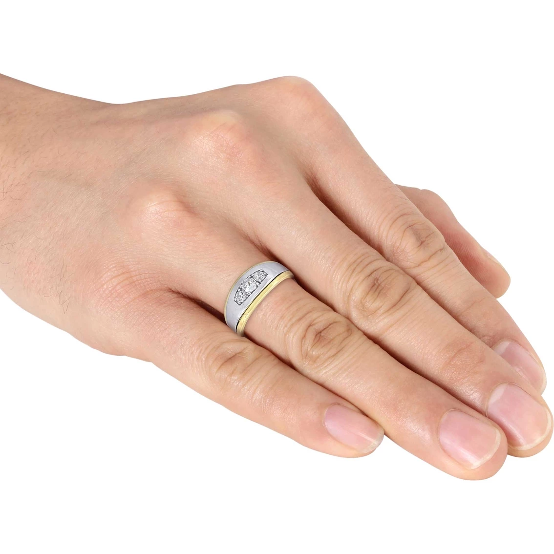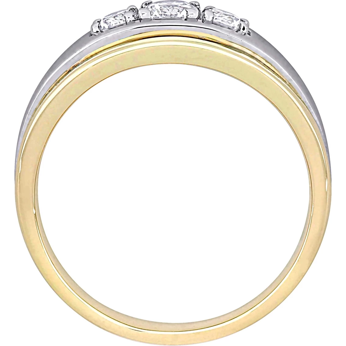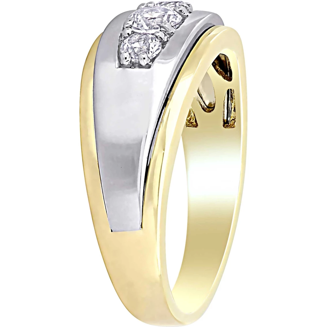 Hot Sale π Sofia B. Men's 10K Two Tone Gold 5/8 Ct. TGW Created White Sapphire 3 Stone Ring π