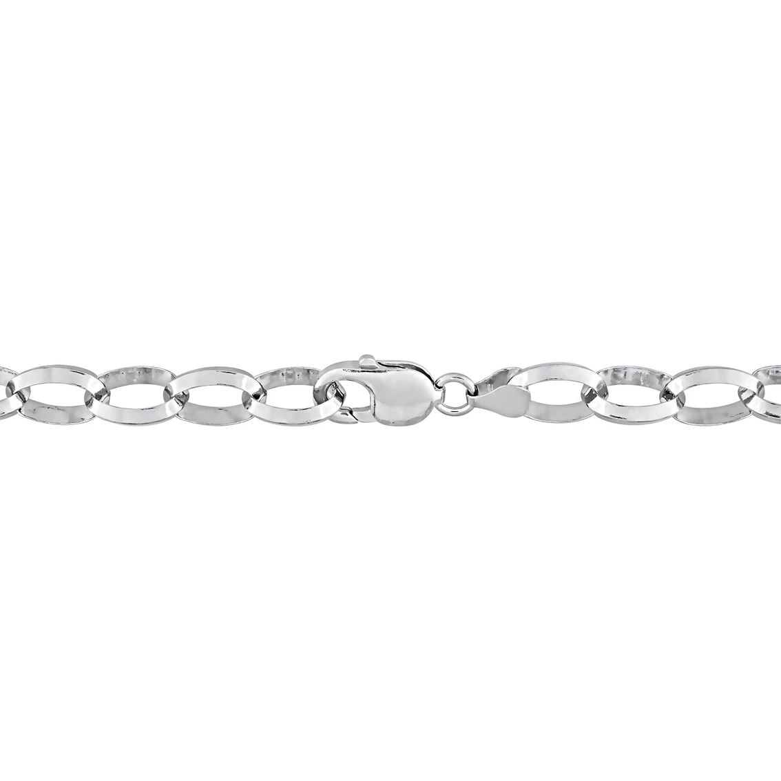 Designed to complement a variety of looks, this rolo chain necklace from Sofia B. is a wonderful addition to any jewelry collection. It is crafted in sparkling sterling silver and features a rolo pattern throughout the necklace. Enhanced with a high polished finish, this necklace is made in Italy and 24-in. in length with 10.5mm wide oval links. It is secured with a lobster clasp closure. Style: AFS008319.